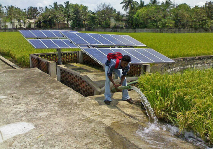 光伏水利产业技术,以太阳能为动力源,即发即用,无需储能电池、无需架设电网、无需运行电费,免去输水渠道投资,易于规划和建设。不仅能够促进光伏行业的健康发展、保证节能减排目标的实现,而且在农业基础设施建设、粮草肉增产、生态环境改善、荒漠治理以及边疆建设等方面,能够取得良好的综合效益,具有巨大的应用市场。太阳能光伏水泵系统适用于阳光充足的偏远无电或缺点地区,从地下、水塘和河渠等水源中取水,满足人们的生活用水,牲口饮用水以及农作物灌溉等。