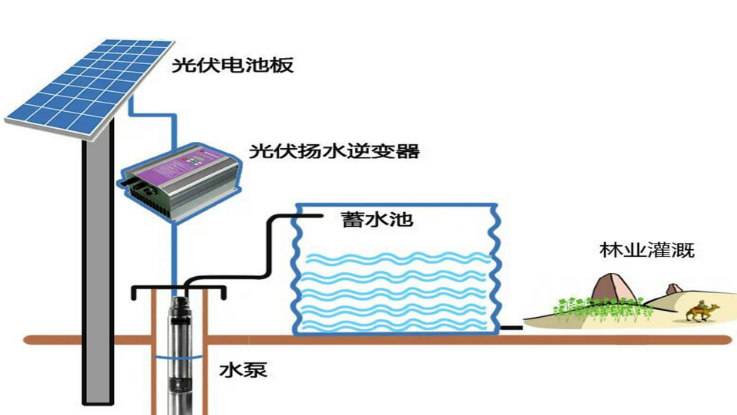 光伏水利产业技术,以太阳能为动力源,即发即用,无需储能电池、无需架设电网、无需运行电费,免去输水渠道投资,易于规划和建设。不仅能够促进光伏行业的健康发展、保证节能减排目标的实现,而且在农业基础设施建设、粮草肉增产、生态环境改善、荒漠治理以及边疆建设等方面,能够取得良好的综合效益,具有巨大的应用市场。太阳能光伏水泵系统适用于阳光充足的偏远无电或缺点地区,从地下、水塘和河渠等水源中取水,满足人们的生活用水,牲口饮用水以及农作物灌溉等。